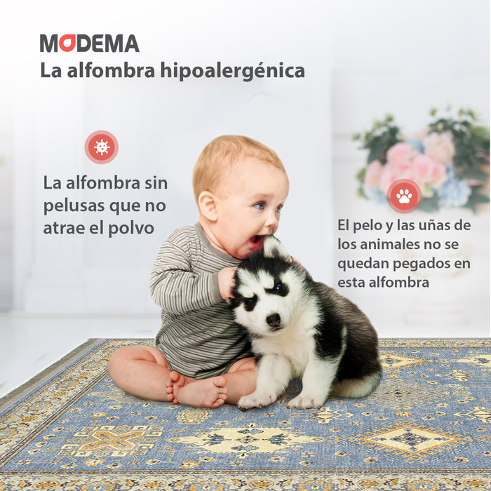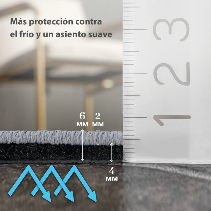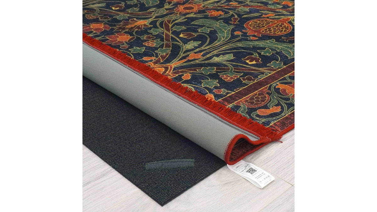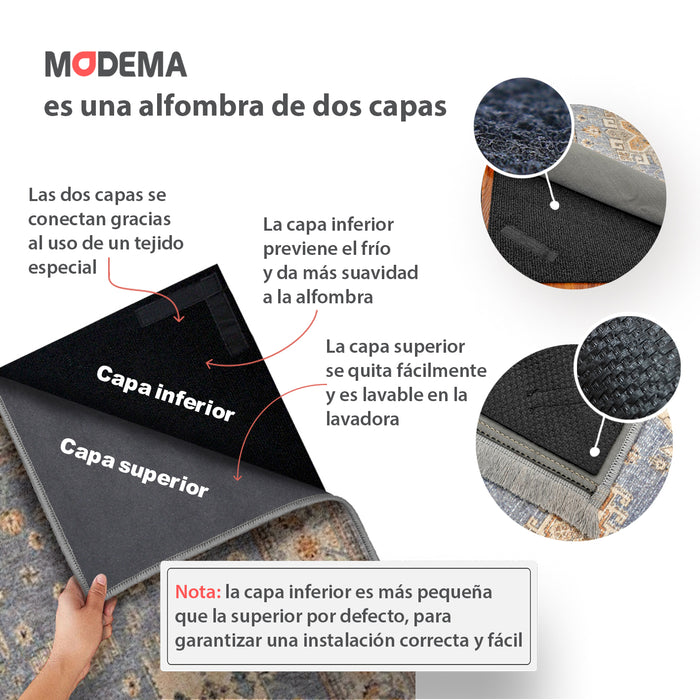 Couche inférieure : Notre support antidérapant fabriqué à partir de matériaux recyclés et sans latex protège votre sol et maintient votre tapis en place. Nettoyez les taches avec de l’eau et du savon si nécessaire.