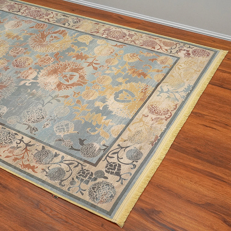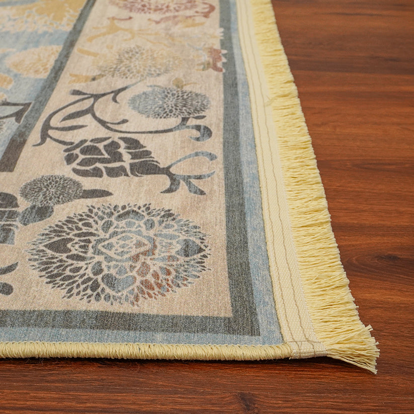Añade un toque de elegancia y calidez a tu hogar con nuestra alfombra Ariel. Con una paleta de colores suaves, esta alfombra presenta patrones florales y ornamentales que combinan lo clásico con lo moderno. Los bordes detallados enmarcan la pieza central, aportando un toque sofisticado. Perfecta para cualquier espacio, esta alfombra no solo embellece, sino que también ofrece confort y calidad.