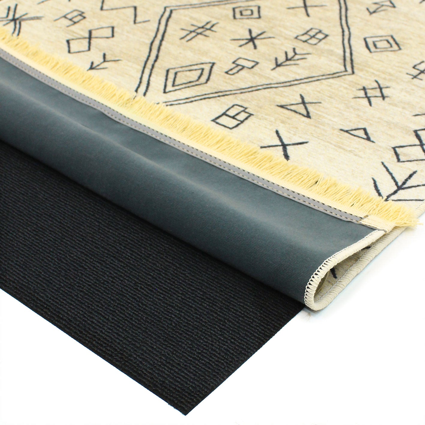Capa inferior: Nuestras bases antideslizantes hechas de materiales recicladas y sin látex protegen el piso y mantienen la alfombra en su lugar. Limpie las manchas con agua y jabón según sea necesario.