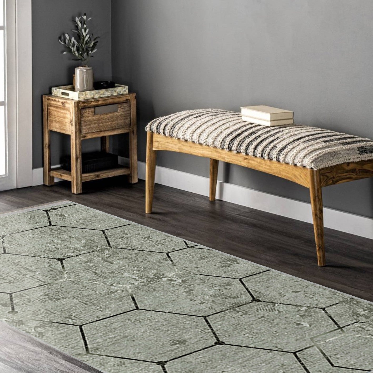 Renueva tu hogar con nuestra alfombra "Terra" de diseño hexagonal en tonos grises. Su patrón geométrico y sofisticado aporta un toque de elegancia moderna a cualquier habitación. Ideal para salas de estar, dormitorios o estudios, esta alfombra no solo embellece tu espacio, sino que también crea un ambiente acogedor y contemporáneo. ¡Convierte tu hogar en un reflejo de tu estilo único con esta pieza esencial!