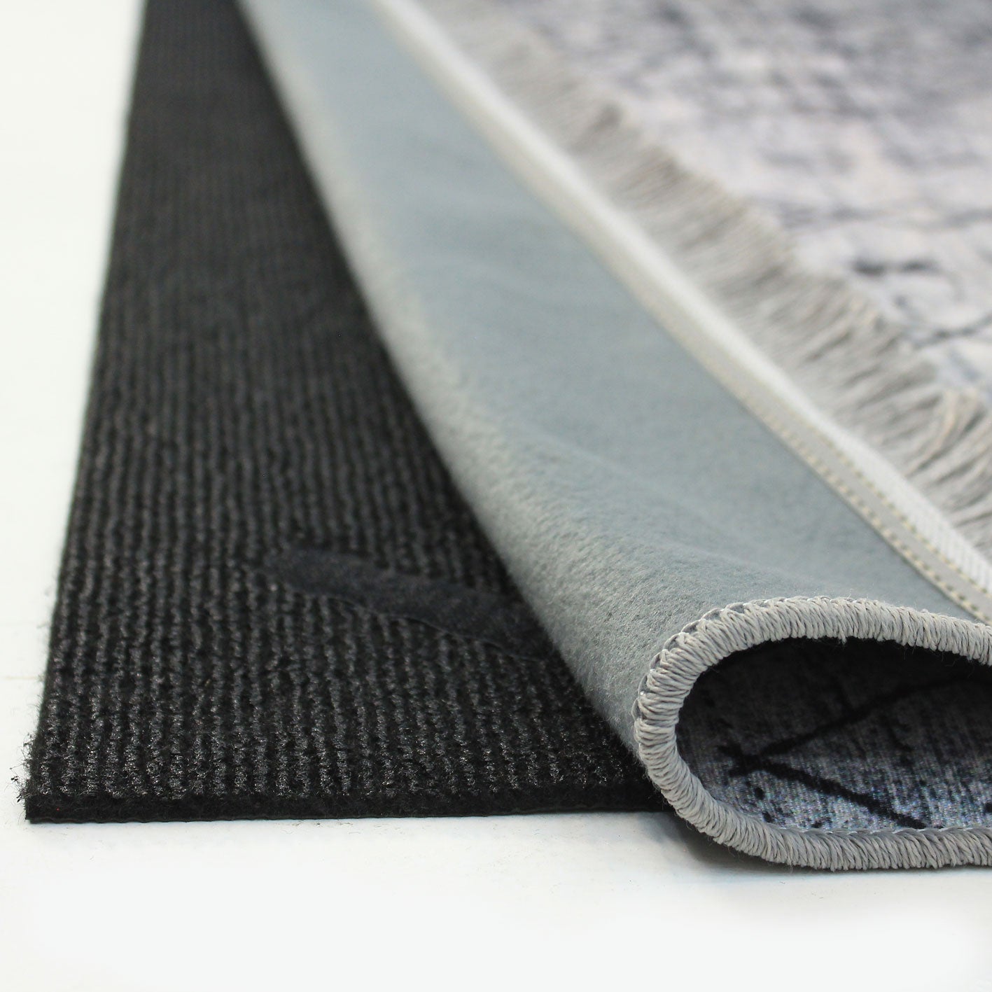Capa inferior: Nuestras bases antideslizantes hechas de materiales recicladas y sin látex protegen el piso y mantienen la alfombra en su lugar. Limpie las manchas con agua y jabón según sea necesario.