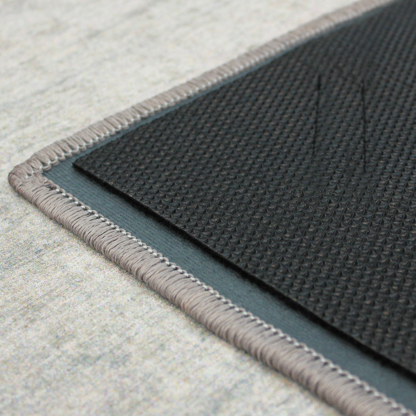 Capa inferior: Nuestras bases antideslizantes hechas de materiales recicladas y sin látex protegen el piso y mantienen la alfombra en su lugar. Limpie las manchas con agua y jabón según sea necesario.