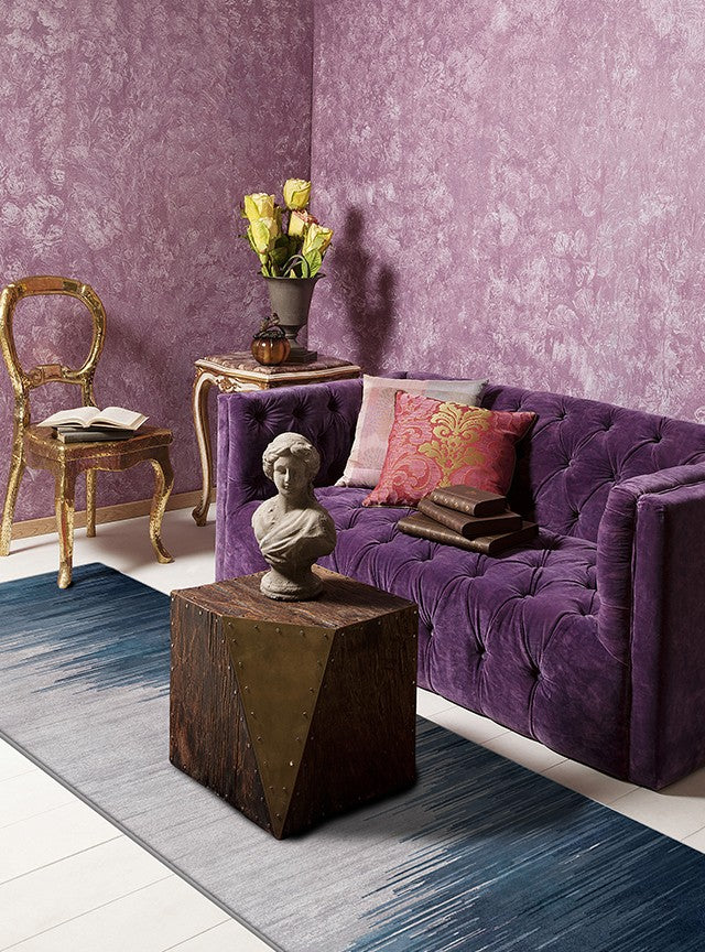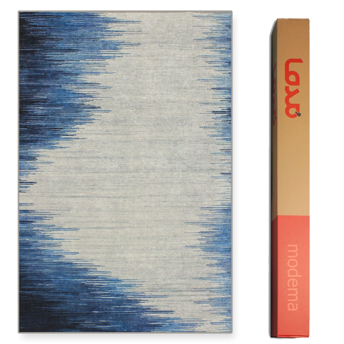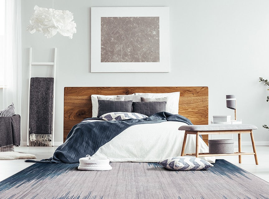Nuestra alfombra Arena presenta un diseño moderno con una gradación de colores que va desde tonos oscuros en los bordes superior e inferior hacia tonos más claros en el centro. La textura parece suave y tiene un patrón que simula pinceladas, lo que le da un aspecto dinámico y contemporáneo.
