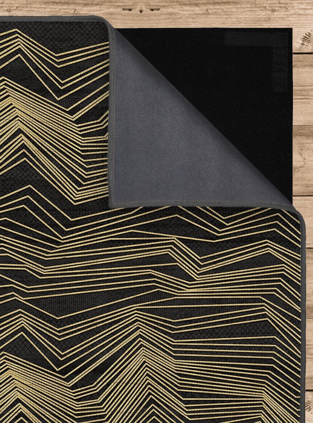 Transforma tu hogar con nuestra alfombra "Pulse" de diseño moderno y elegante. Su patrón de chevron en dorado sobre un fondo oscuro no solo añade un toque de lujo, sino que también crea una sensación de movimiento y sofisticación en cualquier espacio. Perfecta para quienes buscan destacar con estilo, esta alfombra es una obra de arte para tus suelos. ¡Dale a tu sala de estar, dormitorio o estudio, un aire contemporáneo y chic con esta pieza única que captará todas las miradas!